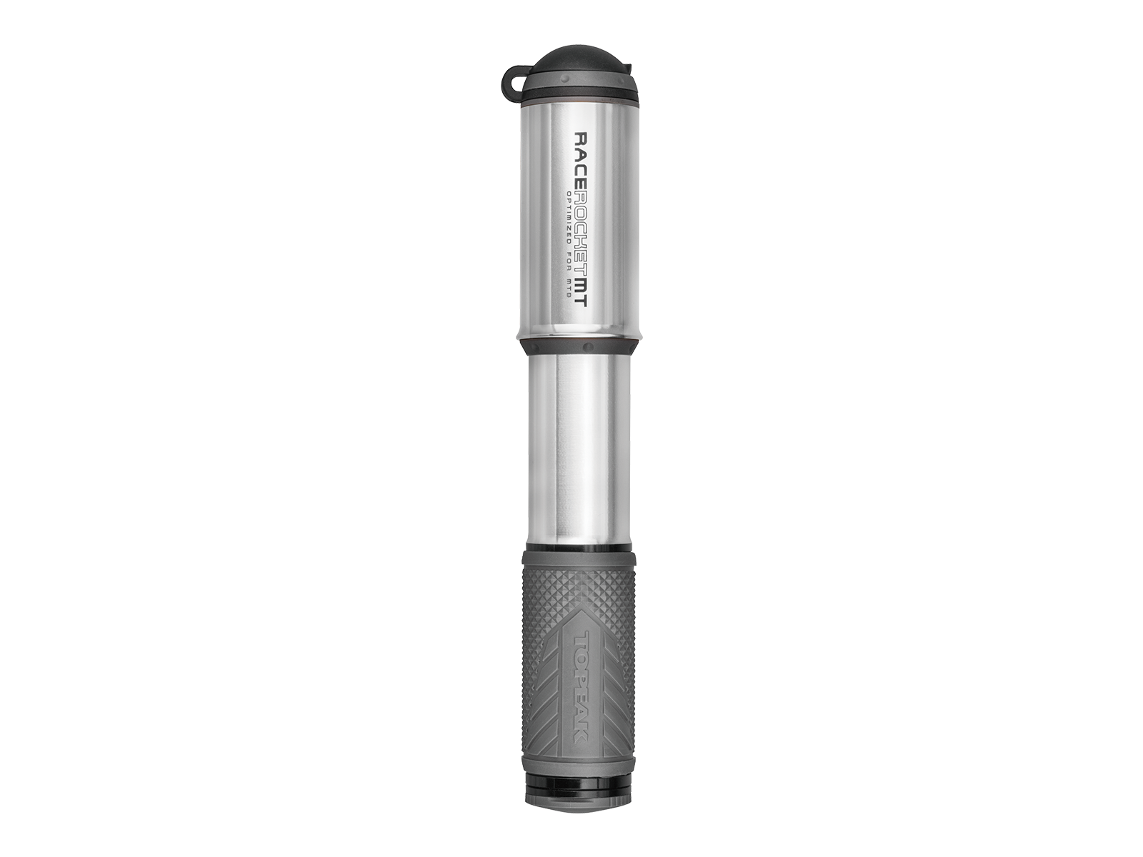 Our fattest version in the RaceRocket® series this all aluminum mountain pump gets big volume tires up to pressure fast. This elegant little mini pump features a full aluminum body, head and pump handle and is designed with an increased barrel diameter to push more air per stroke. An extendable hose with SmartHead® ThreadLock fills Presta and Schrader valves with ease and helps take stress off the valve stem when filling the tire. Its efficient and smooth action inflates tires to 90 psi / 6 bar. Compact in size it easily fits in a jersey pocket or saddle bag and with a low weight of only 114 g the RaceRocket® MT is never a burden to carry into the backwoods. Note : Use the PCT Cap to tighten or remove two piece Presta valve cores when necessary.