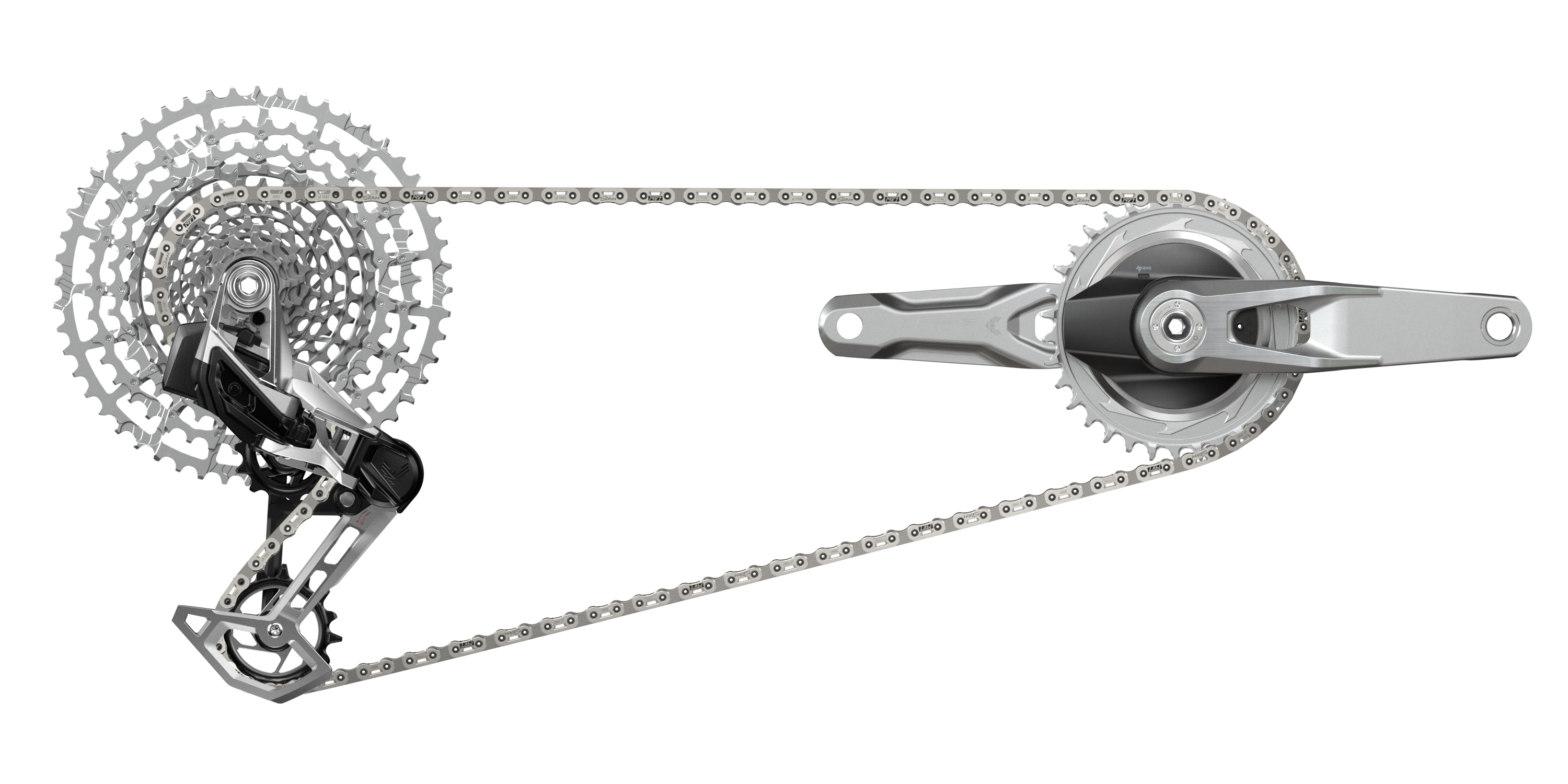 - Aluminum Inline Cage assembly paired with lightest weight AXS Full Mount Transmission derailleur body