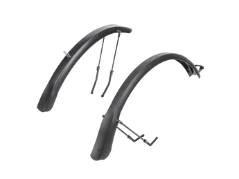 DeFender™ TX is a compact trekking bike fender set. Adjustable aluminum struts with QR levers for quick, perfect alignment and good tyre coverage. The DeFender™ TX set is made of high impact plastic and the highly polished underside prevents dirt buildup. Fits tyres up to 700 x 44c.