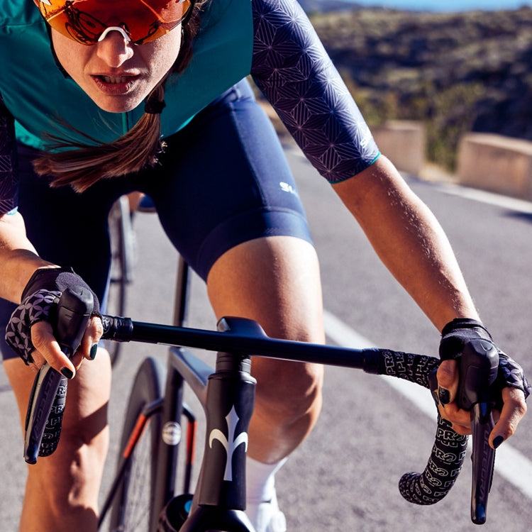 Original three-piece palm and ergonomic finger crotch fit the hand more naturally. Optimized grip design limits slippage between palm, glove, and shifter. Strategic PORON® XRD™ pad design and placement match our newest shifters. Breathable and aerodynamic backing made with soft, 82% recycled Polyester. Durable and abrasion-resistant AX™ synthetic leather palm. Soft, low-profile wiping surface on thumb.