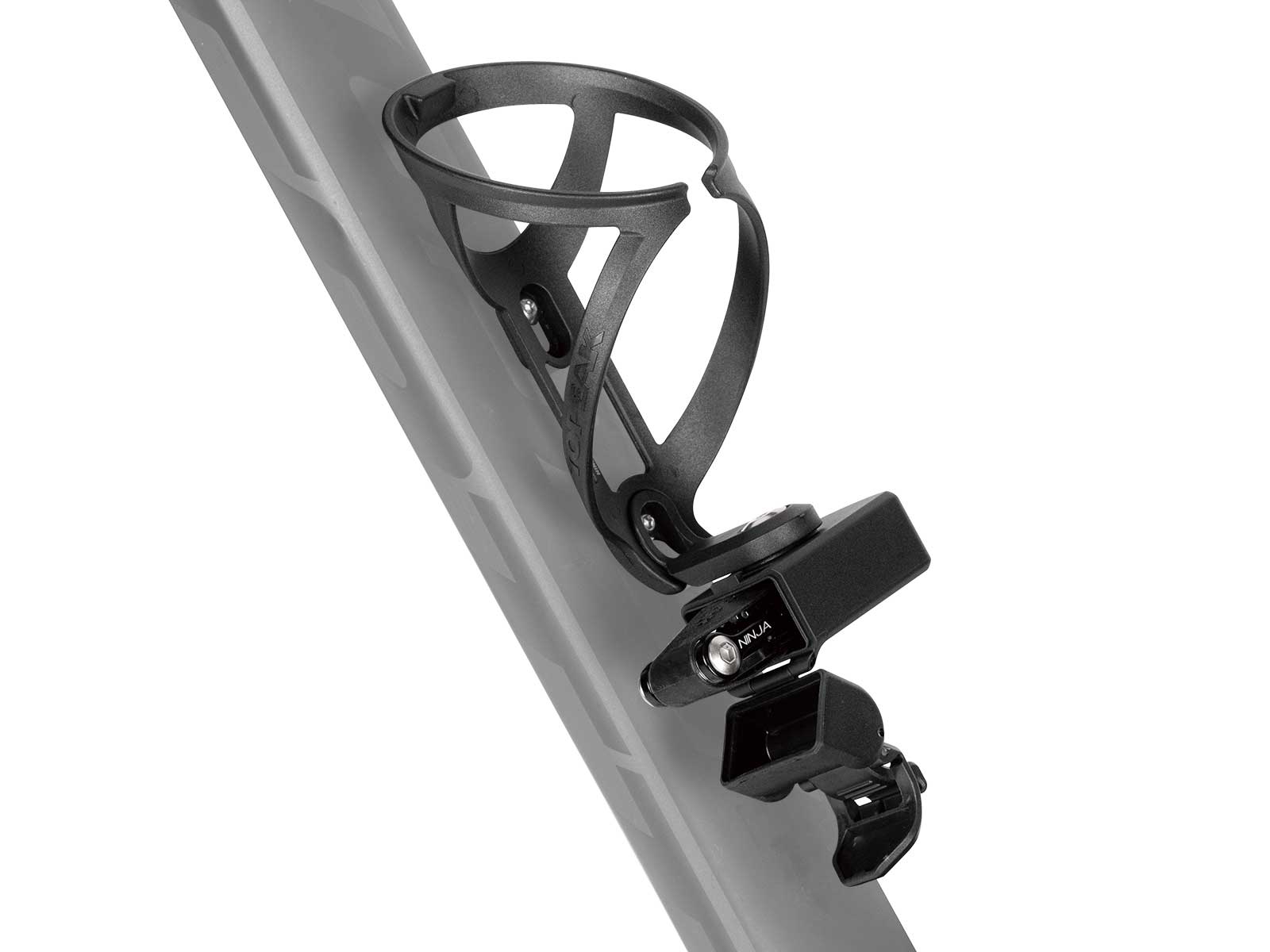 Mount to Ninja Master+ series Cages with included Cage Mount Install on frame, stem, seatpost, or water bottle boss with included Frame Mount and zip ties |