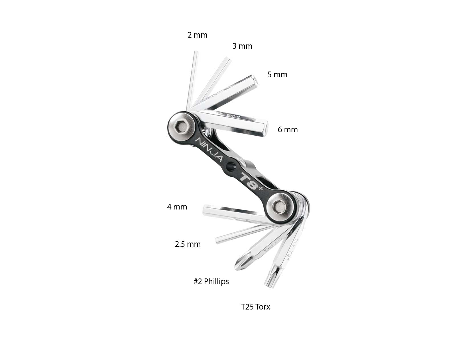 2 / 2.5 / 3 / 4 / 5 / 6 mm Allen wrenches T25 Torx® wrenches #2 Phillips |