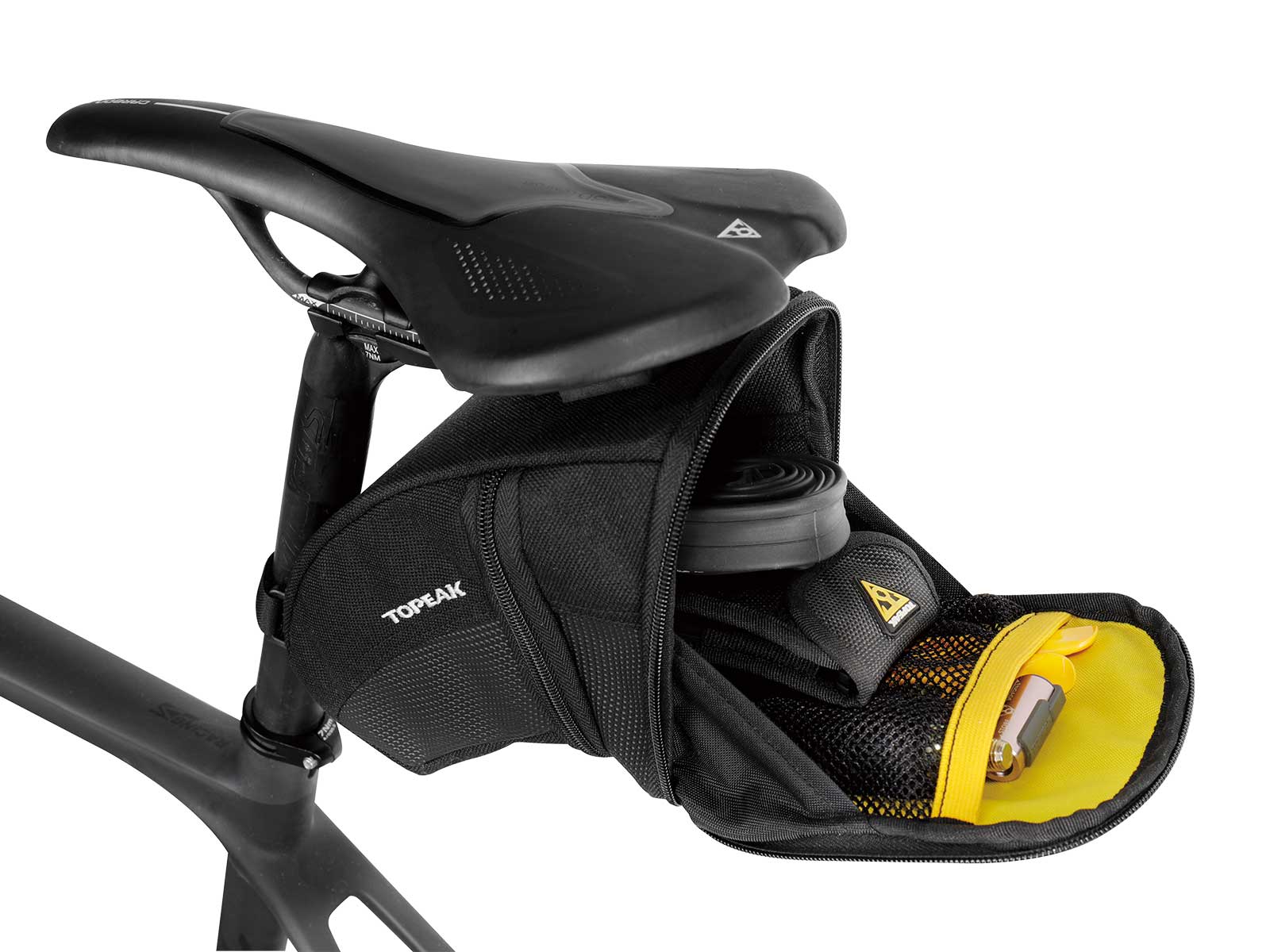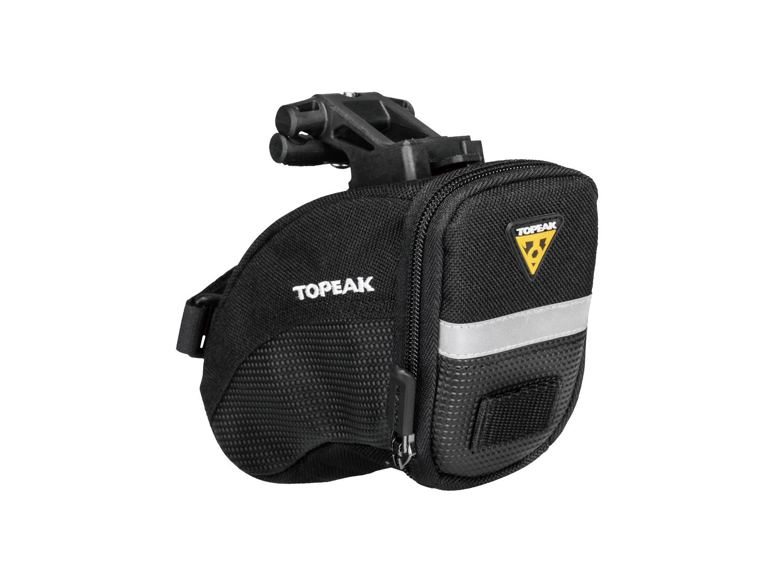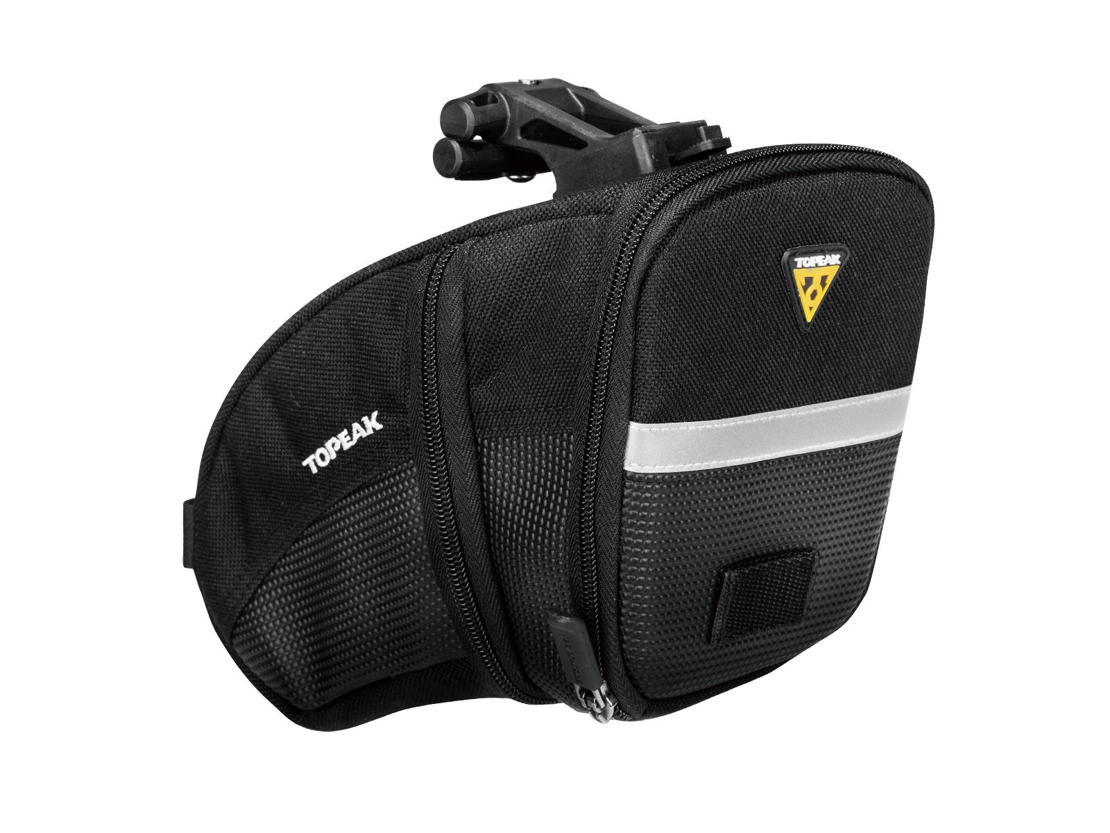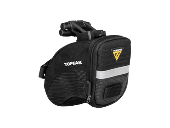 Aerodynamic seat bag holds tubes, tools and other repair items. Mounts and removes quickly with our innovative QuickClick® system. Four sizes offered to exactly fit rider’s needs.