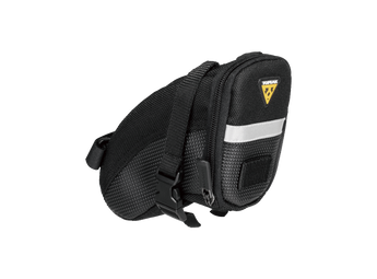 Aerodynamic seat bag holds tubes, tools and other repair items. Mounts with our innovative Quick Release Buckle system to fit all railed saddles. Four sizes offered to exactly fit rider’s needs.