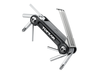 9 function pro quality tool folds in a sleek forged alloy body. An additional removable folding tyre lever stores inside the tool body for a streamlined profile. Perfect for long road rides or endurance mountain biking. Includes a neoprene bag.