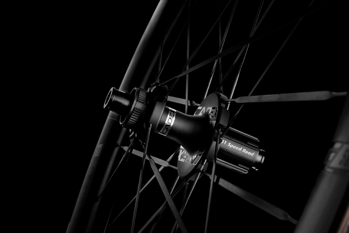 AERO UNLIMITED Featuring an all-new 50mm aero Rim profile and next-generation R3-C aero hubs, the CADEX 50 Ultra Disc balances supreme aerodynamic performance with stability and control in all conditions. Innovative Super Aero bladed carbon spokes further enhance efficiency and minimize weight, while ceramic bearings reduce power loss by up to 30 percent. The wide 22.4mm inner rim width and hookless bead are optimized for high-volume tires and create a seamless interface with increased sidewall support and the ability to run lower tire pressures for improved handling and road feel.