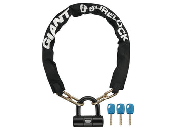 Giant Surelock Force 2 is a tough chain lock featuring 8mm titanium enforced hardened square steel links and an 11mm ultra hardened steel Shackle, with an X2p double bolt locking mechanism and a cover to protect your frame.