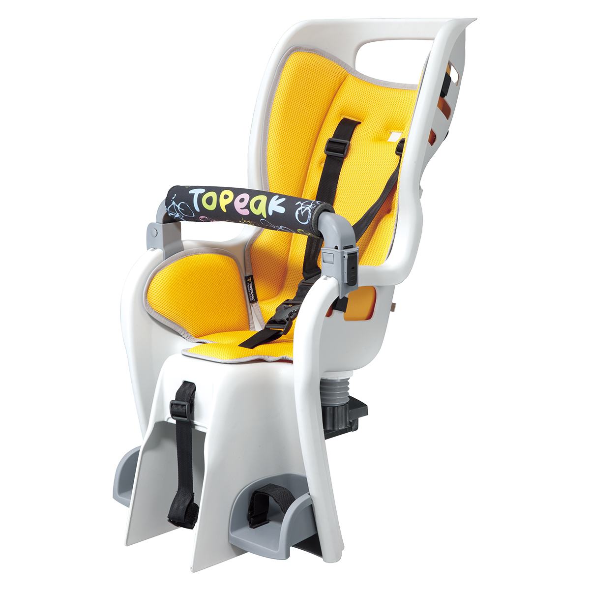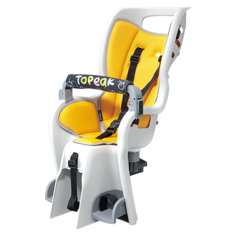 A wrap-around seat structure creates a virtual cocoon of protection and features an updated shoulder harness with a multiple height adjustment system. An innovative suspension system cushions bumps and jolts and the integrated roll bar provides extra head protection and doubles as a carrying handle. Adjustable footrests and straps keep small feet away from spinning wheels. BabySeat™ II complies with stringent European, CPSIA and Proposition 65 safety standards.